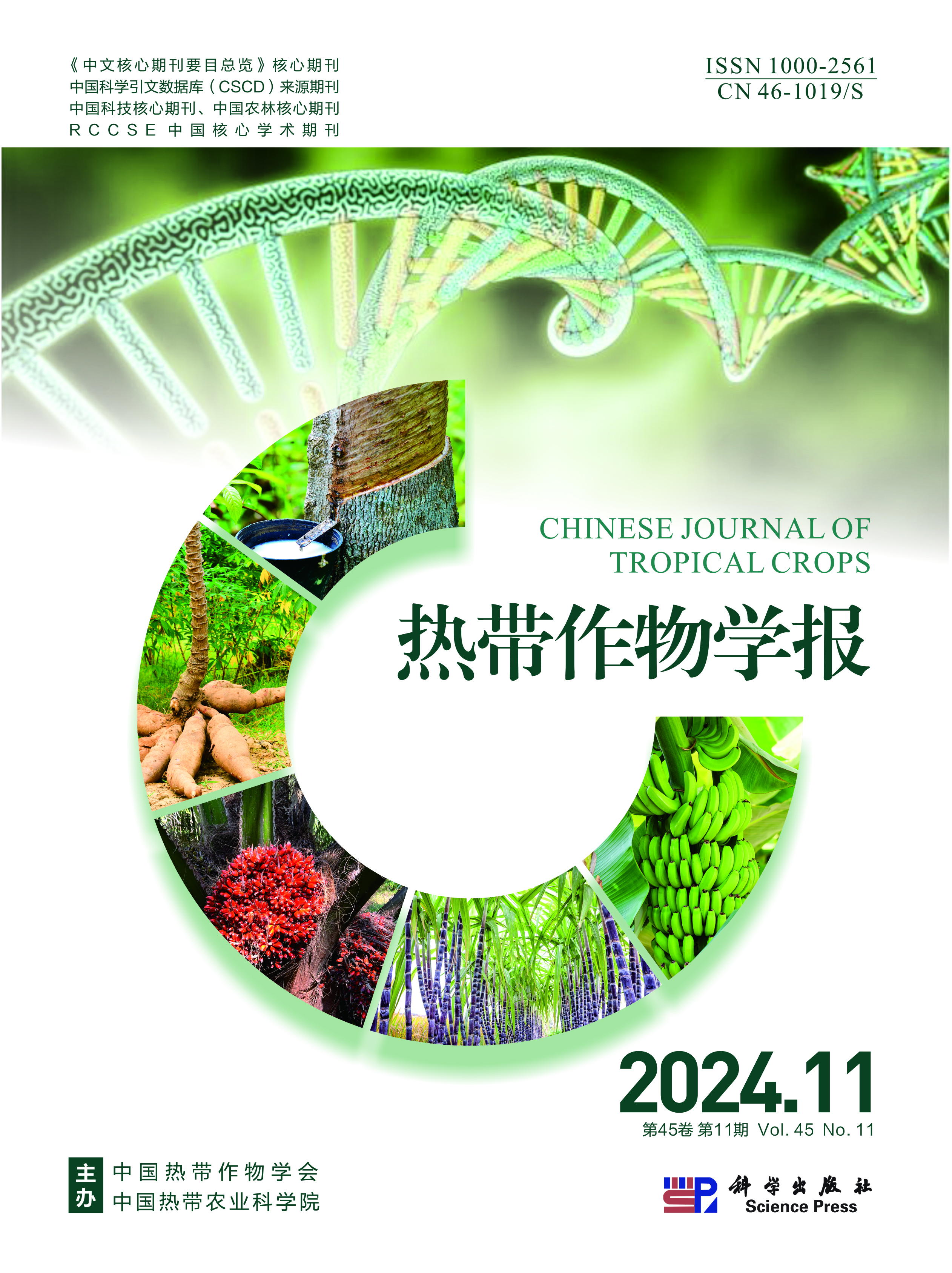 菠萝属于凤梨科(Bromeliaceae)凤梨属(Ananas Merr.)的一种重要热带水果,其花果发育理论与转录调控技术研究是菠萝产业的热点之一。乙烯是调控菠萝催花和果实发育的重要激素之一。菠萝基因组测序鉴定出94个菠萝R2R3-MYB转录因子,分为26亚族,其中S19亚族的MYB103与拟南芥等植物花药和叶片发育调控相关。为证明菠萝MYB103转录因子调控菠萝果实发育的潜在功能,从菠萝台农17号果实中克隆了1个MYB转录因子AcMYB103,全长1204 bp,编码区1038 bp,编码345个氨基酸。该基因编码蛋白含有2个典型的SANT结构域,定位在细胞核,无跨膜结构域和信号肽,是植物R2R3型MYB转录因子家族的一员。将菠萝和拟南芥MYB家族成员进行聚类分析发现,AcMYB103与拟南芥AtMYB103序列相似度最高,并与AtMYB80和AtMYB35聚类于S19亚族,据此命名为AcMYB103。进一步采用体积分数为0%、0.5%、1.0%和1.5%共4个乙烯利浓度处理台农17号、小目手撕和大目手撕3个品种小果期、膨大期和成熟期果实,并分析AcMYB103的表达量。结果表明,在小果期,随着乙烯利浓度的增加,台农17号AcMYB103表达规律呈下调模式,在小目手撕和大目手撕中呈上调模式。在膨大期,在台农17号和小目手撕品种中均呈现下调模式,在大目手撕果实中呈现上调模式。在成熟期果实中AcMYB103不表达,说明AcMYB103基因表达在乙烯利处理的品种和果实发育时期具有特异性,在果实发育早期起到差异化调控作用。本研究为深入研究AcMYB103基因在菠萝果实生长发育的调控机制奠定基础。
