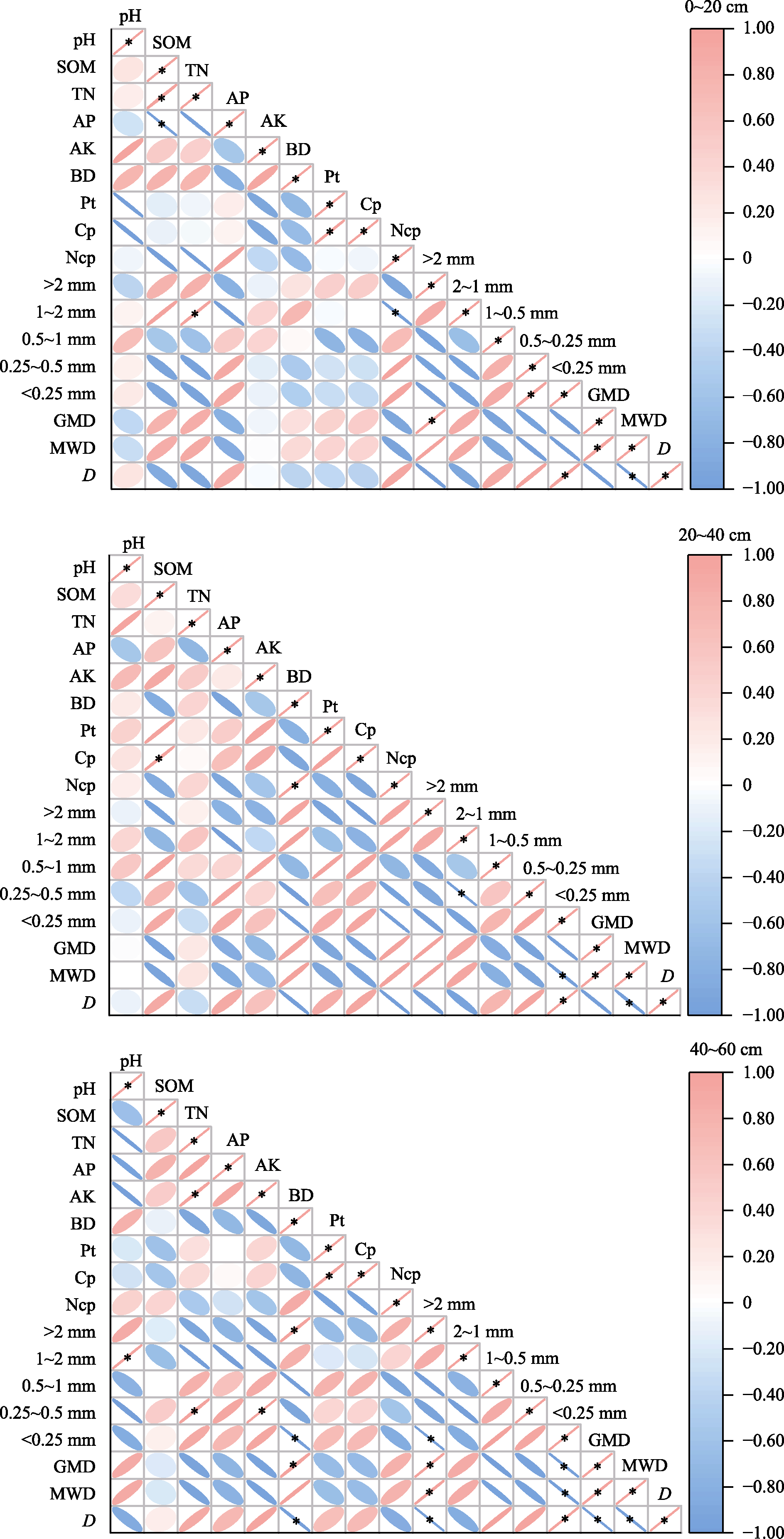 不同土层土壤理化性质与土壤团聚体稳定性指标相关性分析